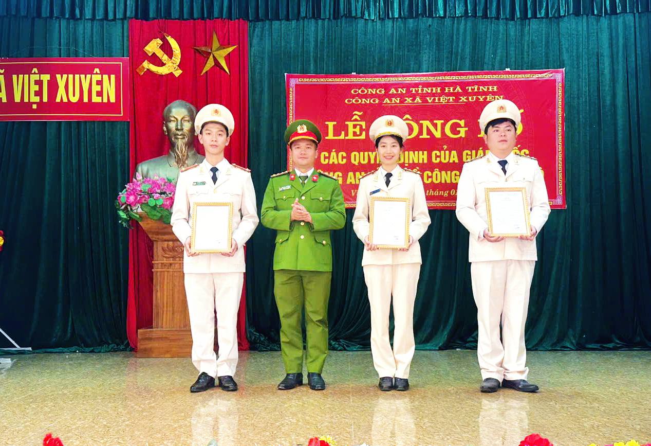 Cùng với đó, điều động các đồng chí: Đại úy Đặng Hữu Chinh (sinh năm 1985, quê xã Yên Hòa), hiện công tác tại Phòng Cảnh sát Quản lý hành chính về trật tự xã hội; Trung úy Nguyễn Huy Thiện (sinh năm 1999, quê xã Trường Lưu), hiện công tác tại Phòng Cảnh sát Phòng cháy, chữa cháy và cứu nạn cứu hộ; Đại úy Lê Thị Ni La (sinh năm 1995, quê xã Thạch Hà), hiện công tác tại Phòng Cảnh sát Thi hành án hình sự và hỗ trợ tư pháp, đến nhận công tác tại Công an xã Việt Xuyên.