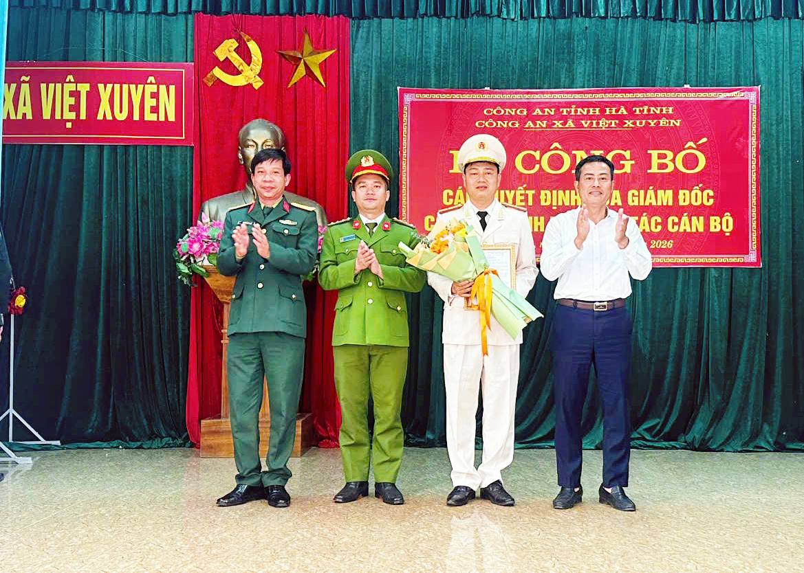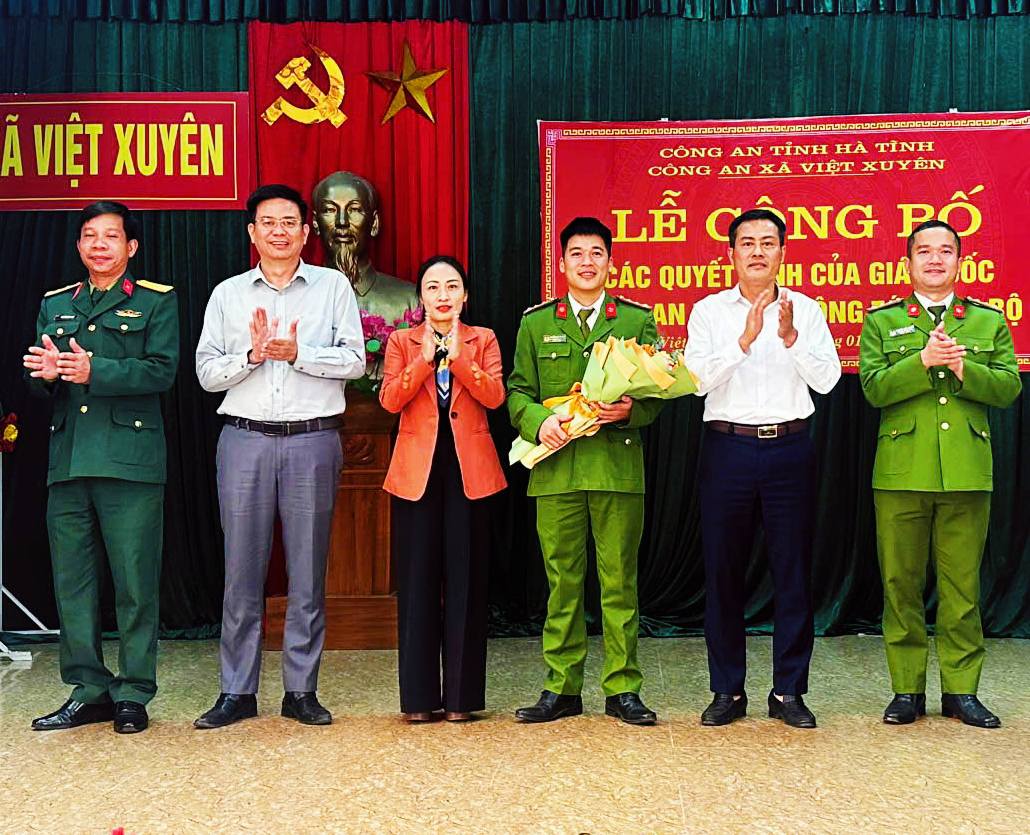 Tại buổi lễ, đại diện Công an xã Việt Xuyên đã công bố các Quyết định số 205, 140, 144, 185/QĐ-CAT-PX01 của Giám đốc Công an tỉnh Hà Tĩnh về việc điều động cán bộ. Theo đó, điều động đồng chí Thiếu tá Lê Doãn Quý (sinh năm 1983, quê quán xã Xuân Lộc, tỉnh Hà Tĩnh), Phó Trưởng Công an xã Đồng Lộc, đến nhận công tác và giữ chức vụ Phó Trưởng Công an xã Việt Xuyên.