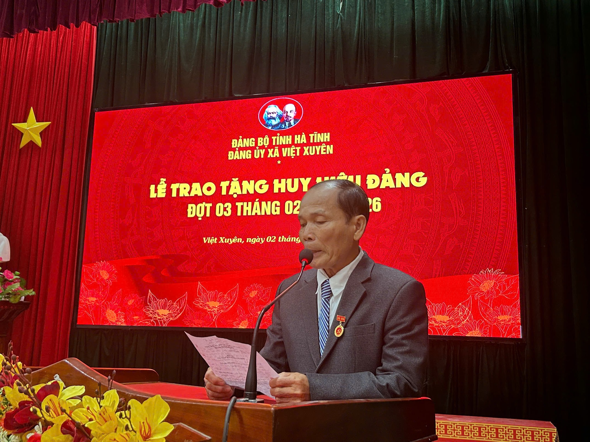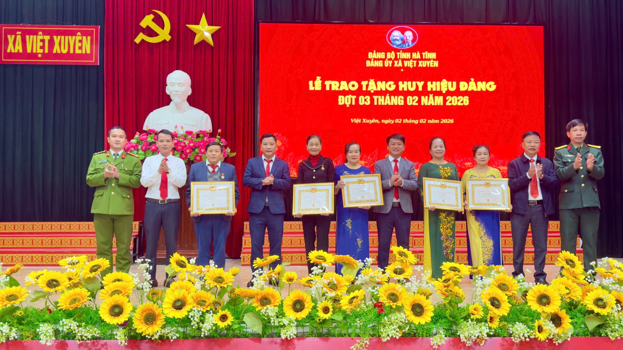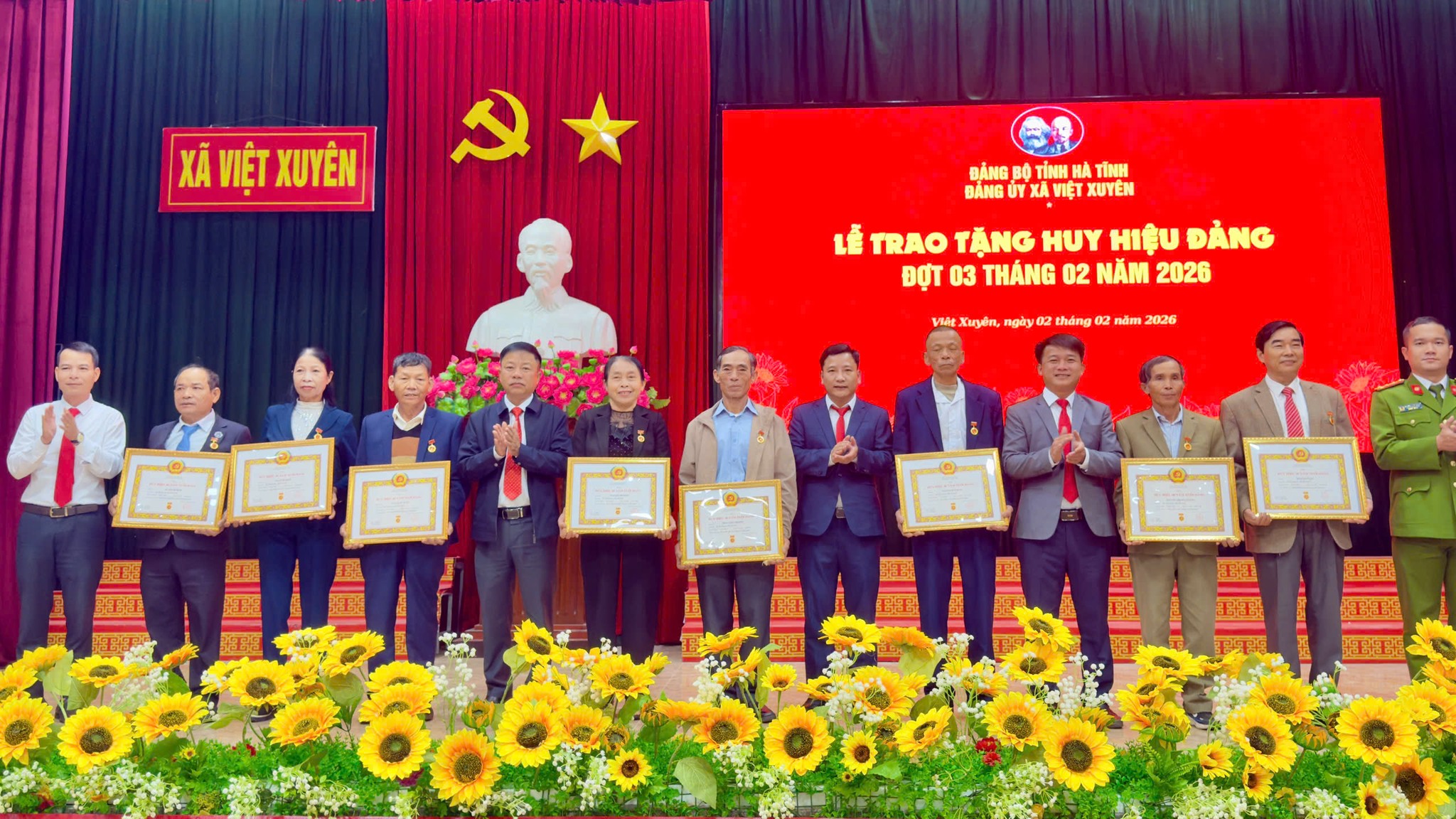 Cũng trong khuôn khổ buổi lễ kỷ niệm, Đảng ủy xã đã long trọng tổ chức Lễ trao tặng Huy hiệu Đảng cho 27 đồng chí đảng viên đủ tiêu chuẩn (Huy hiệu 60 năm tuổi đảng cho 04 đ/c, 55 năm cho 01 đ/c, 50 năm cho 03 đ/c, 45 năm cho 03 đ/c, 40 năm cho 08 đ/c và 30 năm tuổi Đảng cho 08 đ/c). Đây là sự ghi nhận của Đảng đối với quá trình rèn luyện, cống hiến, phấn đấu không ngừng của các đồng chí trong sự nghiệp cách mạng.