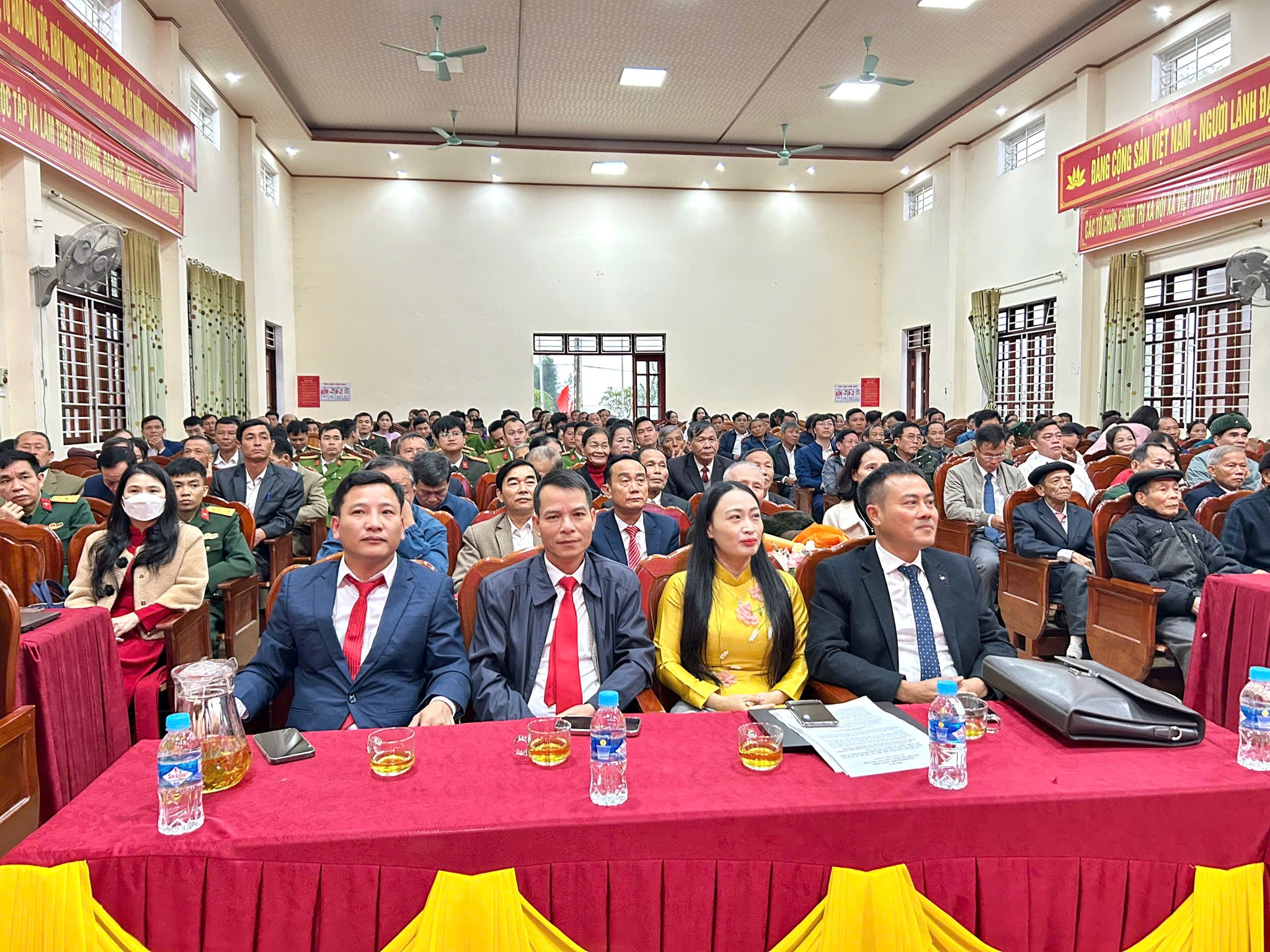 Tham dự tại buổi lễ có các đồng chí trong Thường trực Đảng ủy, Ủy viên Ban Thường vụ, Ban Chấp hành Đảng bộ xã, Bí thư chi bộ của 38 tổ chức đảng trực thuộc, toàn thể cán bộ, đảng viên thuộc Đảng bộ UBND xã và các chi bộ cơ sở, các đảng viên mới, các quần chúng ưu tú đã hoàn thành chương trình bồi dưỡng nhận thức về Đảng, đặc biệt, buổi lễ vinh dự đón tiếp 29 đồng chí là cán bộ lãnh đạo xã qua các thời kỳ.